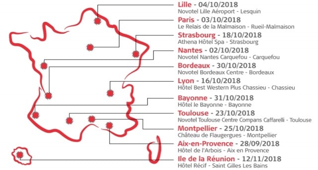 Du 28 Septembre au 31 Octobre à Lille, Paris, Strasbourg, Nantes, Lyon, Bordeaux, Bayonne, Toulouse, Montpellier et Aix-en-Provence.