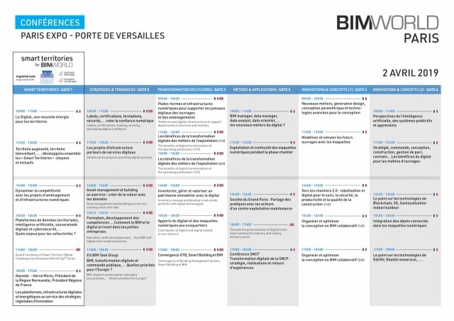 Voici notre résumé des sujets présentés pendant les deux journée (2&3 avril) avec en bonus les conférences founies sur le site officiel BIM World.