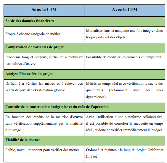 9. Quels sont les bénéfices de l'intégration du CIM dans le coût global d'un projet ?