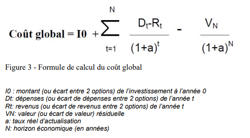 Le coût global, qu'il soit relatif ou absolu, est obtenu par la formule suivante :
