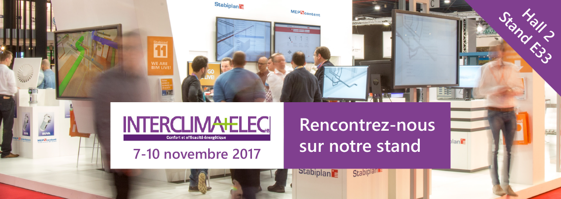 Du 07 au 10 novembre, Stabiplan sera présent au plus grand salon de la construction d'Europe: Interclima + Elec, le salon des solutions pour l'efficacité énergétique et le confort qui se tiendra à Paris Nord Villepinte. Lors de ce salon, nous vous montrerons comment des installateurs, des bureaux d'études et des responsables de projets atteignent l'excellence grâce au BIM.