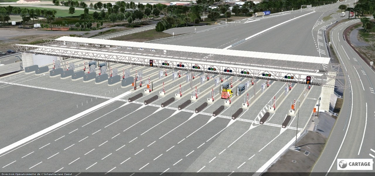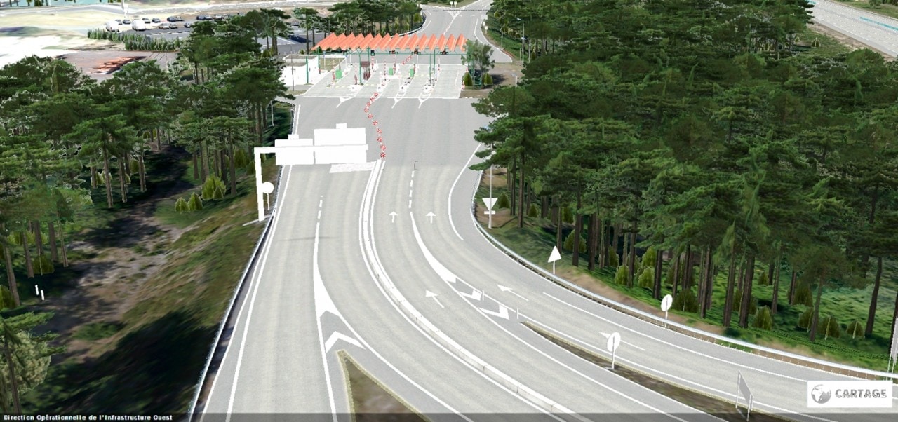 - La réalisation d’une maquette numérique de l’autoroute A63. La situation existante à 2x2 voies et le projet d’élargissement à 2x3 voies ont été modélisés sur 4 km (27 km d’ici fin 2017) en prenant en compte l’ensemble des ouvrages traditionnellement présents sur une infrastructure autoroutière (gares de péage, passages supérieurs, passages inférieurs, ouvrages hydrauliques, réseaux, etc.).