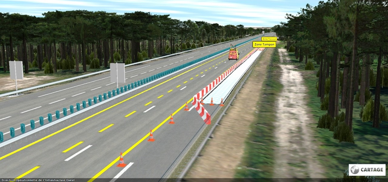 - Le développement de Cartage, une plateforme d’agrégation de données multi-sources (SIG, maquettes numériques, CAO, DAO, PDF, etc.) qui repose sur un socle 3D réaliste issu d’un levé LiDAR effectué sur l’ensemble du linéaire de l’A63. Cet outil permet de combler le vide et d’assurer une interopérabilité et des échanges entre l’univers du SIG et celui du BIM. Très utilisé en revue de projet où il se substitue aux plans papiers, Cartage démocratise l’utilisation des maquettes numériques par tous les intervenants du projet.