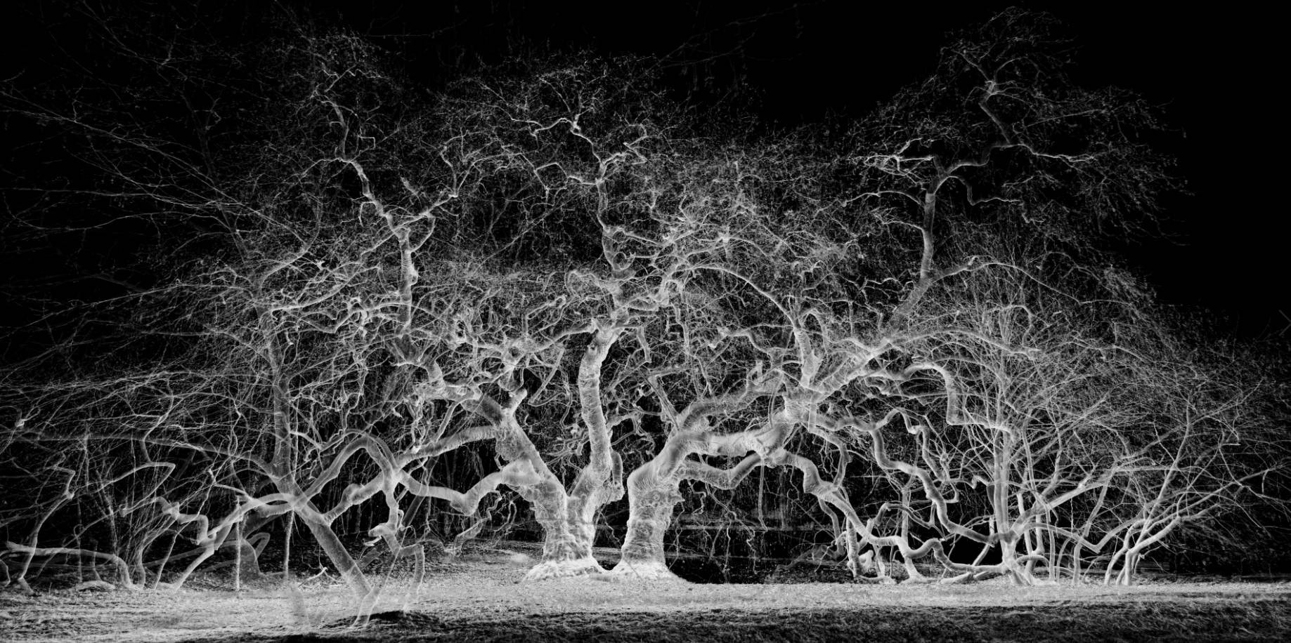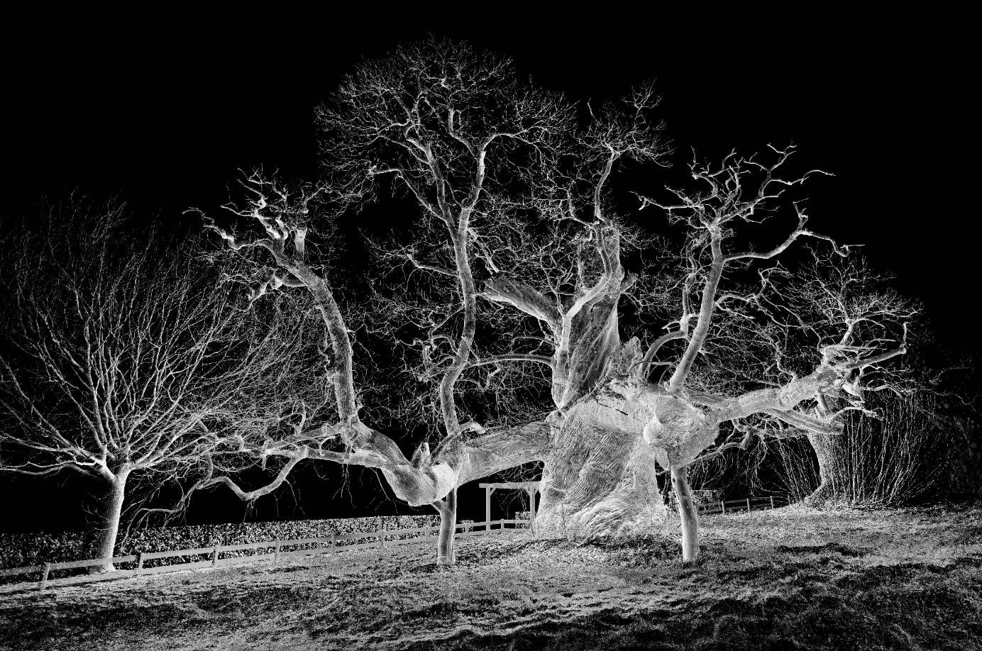 Ce chêne au tronc vrillé se situe sur une île accessible à marée basse. Comme pour tous les autres arbres que j'ai scannés (avec un Faro Focus), il était nécessaire de procéder à la capture en l'absence de vent et d'intempéries. Je pensais que les feuilles allaient être gênantes, mais les branches étaient suffisamment visibles pour révéler la géométrie si particulière de cet arbre remarquable.