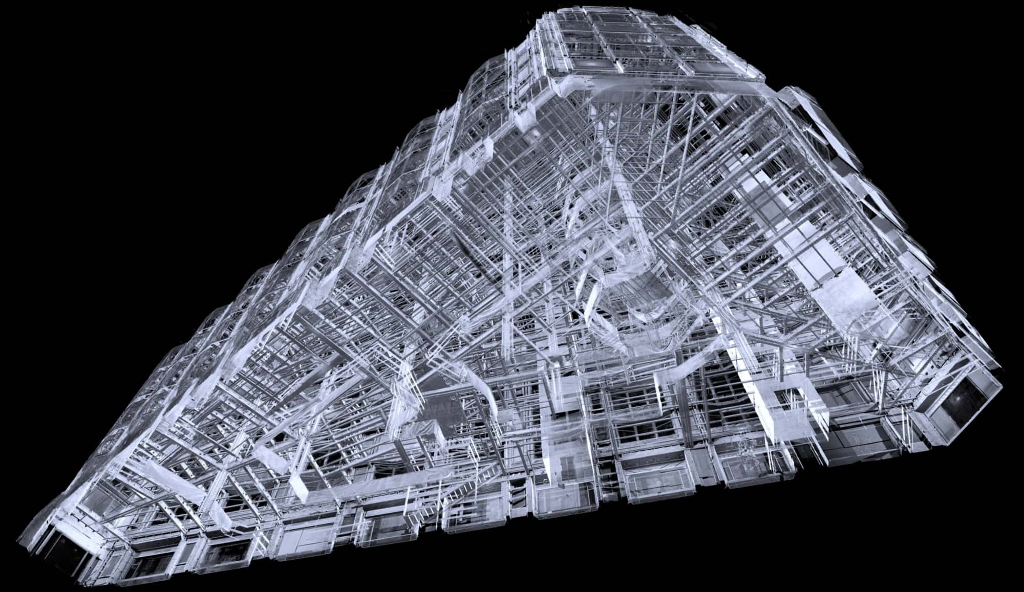 Contrairement à de nombreux acteurs du secteur de la capture 3D qui veulent obtenir un rendu texturé de type maillage avec aspect photographique, nous pensons que les nuages de points bruts correctement mis en valeur peuvent se révéler de précieux alliés pour la construction. Déjà, ils sont livrés très rapidement après la campagne sur site. Ensuite, ils contiennent la mesure au meilleur de sa précision, et les corps de métier techniques ont souvent besoin d'une précision infra-centimétrique.