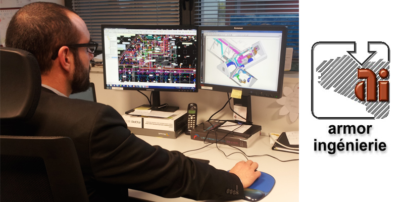 L’entreprise Armor Ingénierie, créée en 1985, est un bureau d’études spécialisé dans les fluides : chauffage, plomberie, traitement d’air, traitement d’eau, électricité courant fort et faible, désenfumage, coordination SSI. Basée dans les Côtes d’Armor (Langueux 22), elle met son expertise au service de la construction et de la rénovation de bâtiments, de logements, tertiaires, industriels dans le secteur public et privés. Grâce à son savoir-faire et à sa réactivité reconnus, elle se développe dans des environnements très techniques, bien au-delà du Grand Ouest. Depuis 2014, elle utilise la CAO Plancal nova pour la réalisation – dessins et calculs intégrés- de ses plans 3D, dans le cadre de projets BIM. Sa satisfaction est telle qu’elle s’emploie à ce que ses partenaires –entreprises d’installation, IUT de Lorient- utilisent voire même enseignent Plancal nova aux futurs chargés d’affaires et ingénieurs fluides.