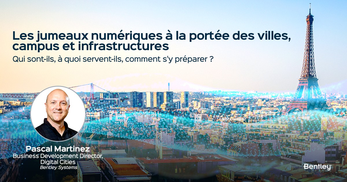 À l'occasion de BIM World Paris, Pascal Martinez, Business Development Director, Digital Cities de Bentley Systems vous guide et vous explique le pourquoi du comment des jumeaux numériques en vidéo.