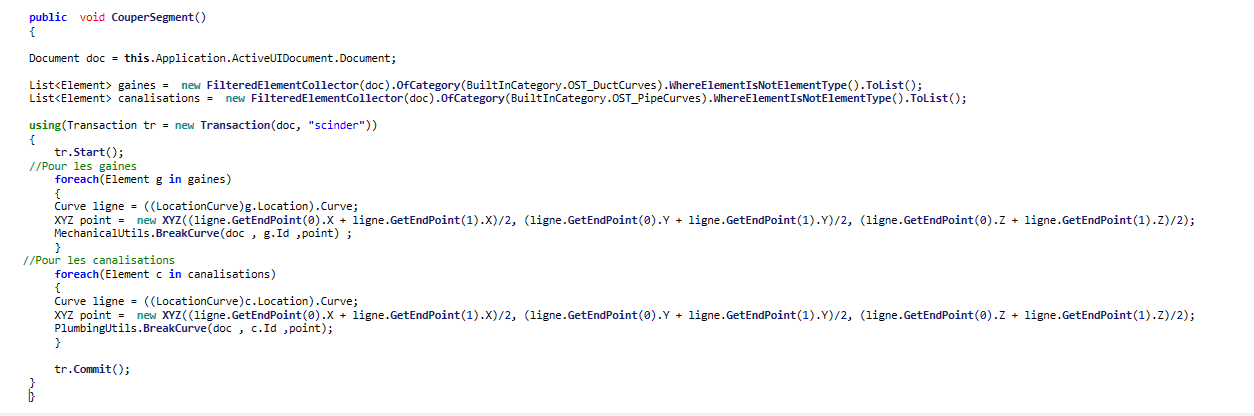 - MechanicalUtils.BreakCurve (doc, gaine.Id ,point) pour les gaines.