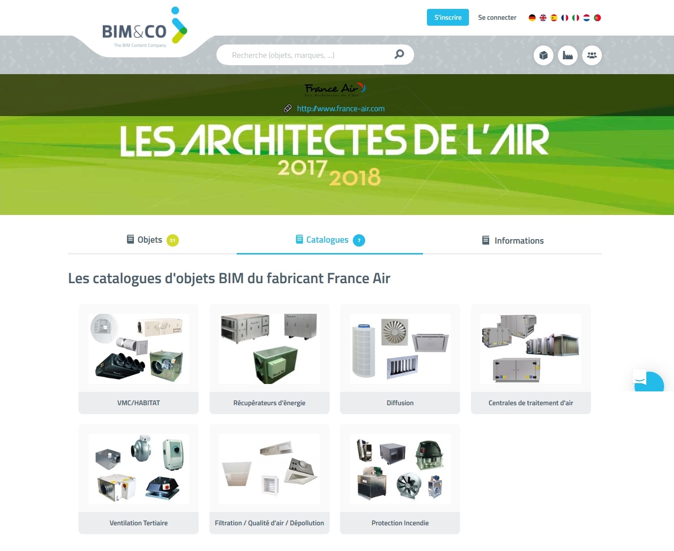 Plus de 50 produits France Air disponibles sur la plateforme BIM&CO