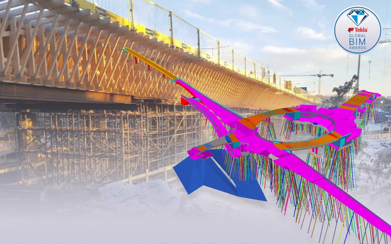 Trafikplats Vega, échangeur autoroutier en béton coulé sur site comprenant cinq ponts et des murs de soutènement, était un projet complexe conçu et construit sans aucun plan papier. ELU a modélisé et mis en œuvre cette conception complexe à l'aide de Tekla Structures, et a même développé ses propres composants pour répondre à leurs besoins spécifiques.