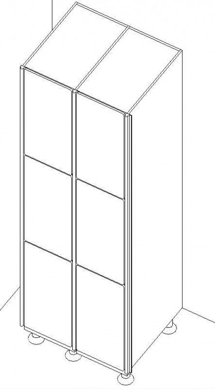 Un casier vestiaire de 30 cm de largeur paramétrique en version 2, 3 ou 4 portes. Avec portes ouvertes ou fermées.