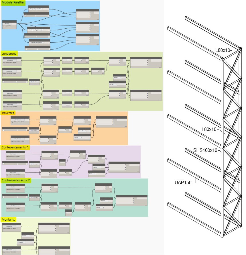 Dynamo Script : Famille pour construire un palettier, Stockage, Rayonnage