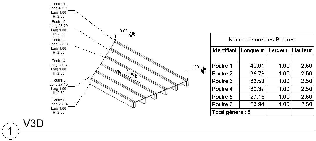 Ensemble de composants Revit 2019 pour construire un tablier de pont trapézoïdal en pente, avec extraction des données des poutres en étiquettes et nomenclature _Famille adaptative Poutre _Famille quadrillage adaptatif motif rectangle _Etiquette de poutre: Identifiant, Longueur et section Le format des paramètres partagés n'est pas reconnus par la plateforme HexaBIM Tuto disponible sur Revit-Mémo: https://revit-memo.blogspot.com/2019/04/revit-2019familles-adaptatives-et.html