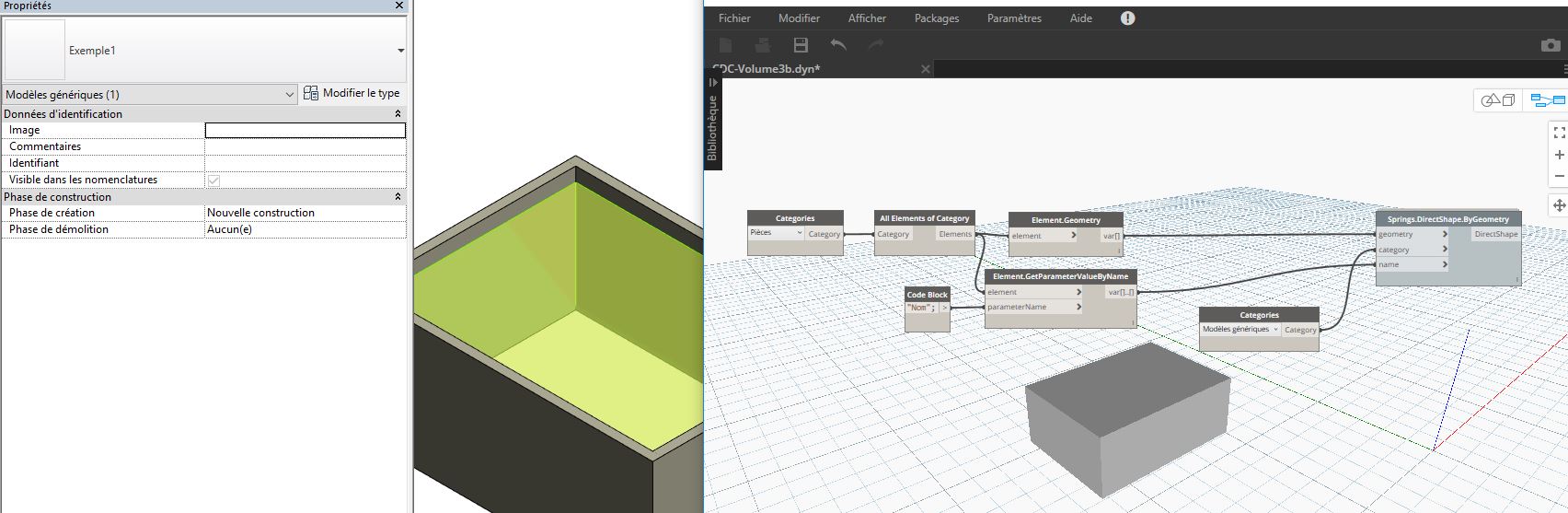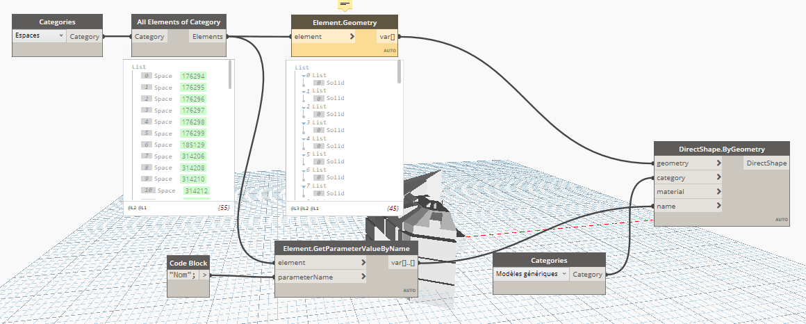 C'est le noeud "DirectShape" qui créer la géométrie en dehors de dynamo.