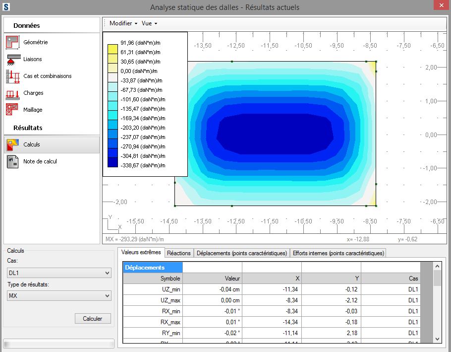 Pour ceux qui ont du mal à imaginer l'usage de cette fonctionnalité de Revit 'structure', ci-joint copie d'écran de Revit (dans ce cas, cartographie du moment d'une dalle en X sous son poids propre).