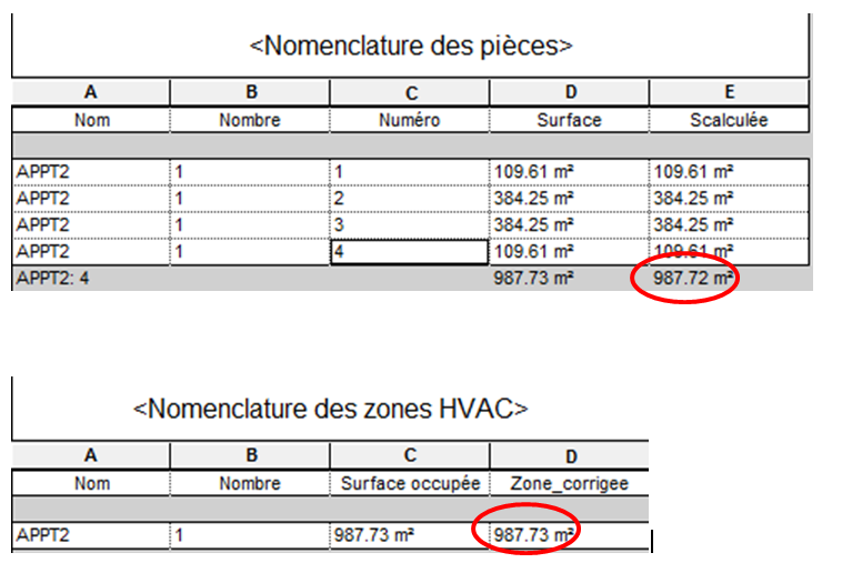 Dans un projet Revit, j'utilise une nomenclature de pièces avec les surfaces arrondies à 2 chiffres après la virgule. Mon objectif est de pouvoir obtenir la somme des surfaces d'un regroupement de pièces (pour un logement par exemple). Je sais que je peux utiliser un paramètre calculé dans ma nomenclature qui tronque chaque surface à 2 chiffres après la virgule et qui fait ensuite la somme de ces surfaces. Néanmoins, mon objectif est d'utiliser l'outil "Zone" de Revit pour obtenir cette surface. De même, je peux tronquer la valeur des surfaces des zones. Mon problème est que la surface de la zone tronquée est parfois différente de la somme des surfaces tronquées des pièces. (cf pièce jointe) Comment résoudre ce problème, tout en conservant l'usage de l'outil Zone ?