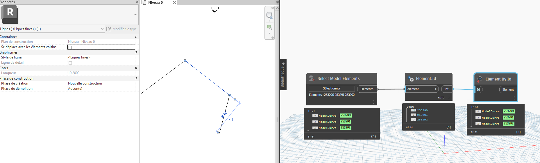 J'ai essayé hier soir d'écrire ça sur Dynamo mais suis un peu bloqué car que ce soit les lignes de modèles, ou les lignes de détails, celles ne contient pas d'Id GUID.