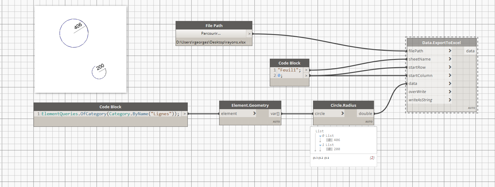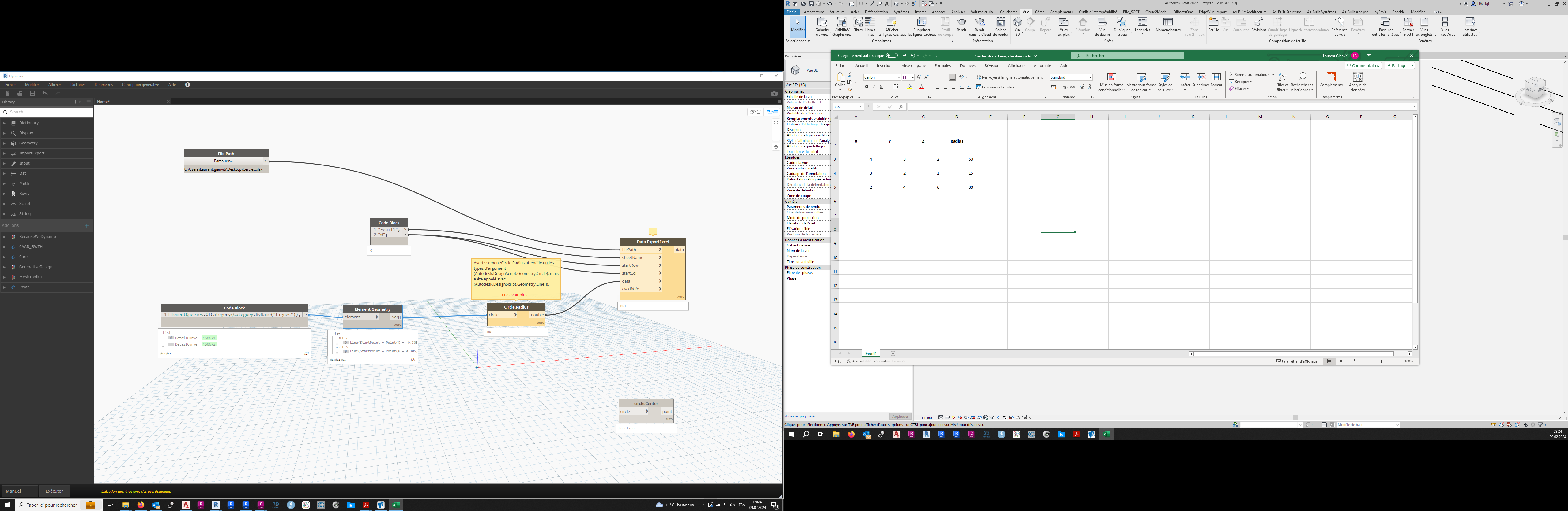 J'ai une base de donnée (.xlsx, .csv, shp, ou autre), et j'aimerais générer avec ça des objets (genre cercles etc) --> Sur ça pas de problème, sachant que je possède le rayon des cercles à tracer (Sous Revit ou Civil 3D pour la modélisation)