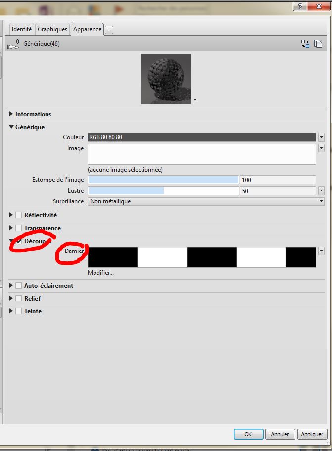 j'ai réussi à jouer sur la transparence du matériaux en revanche la découpe est inconnu pour moi.