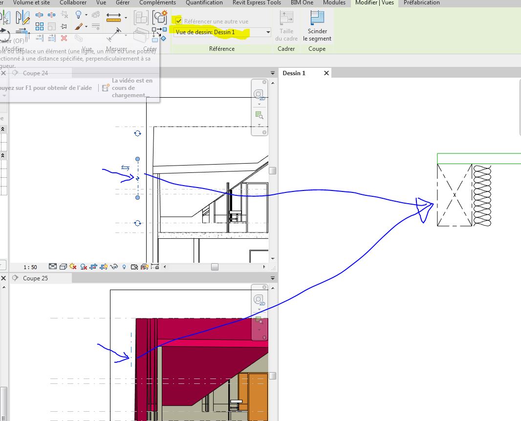 je fais une coupe et avant de la créer je référence une vue de détail.