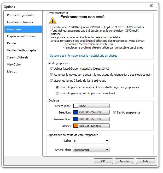 et j’espère que vous pourriez m'aidé a le résoudre. j'ai installé Autodesk Revit 2016 et dans Option--Graphisme j'ai trouvé cet avertissement (Capture ci-jointe),donc mon pc n'utilise pas ma carte graphique lors de l'utilisation du Revit du coup la manipulation est pas terrible. Merci de me communiquer une solution de telle sorte que Revit reconnais ma CG et bonne journée a tous