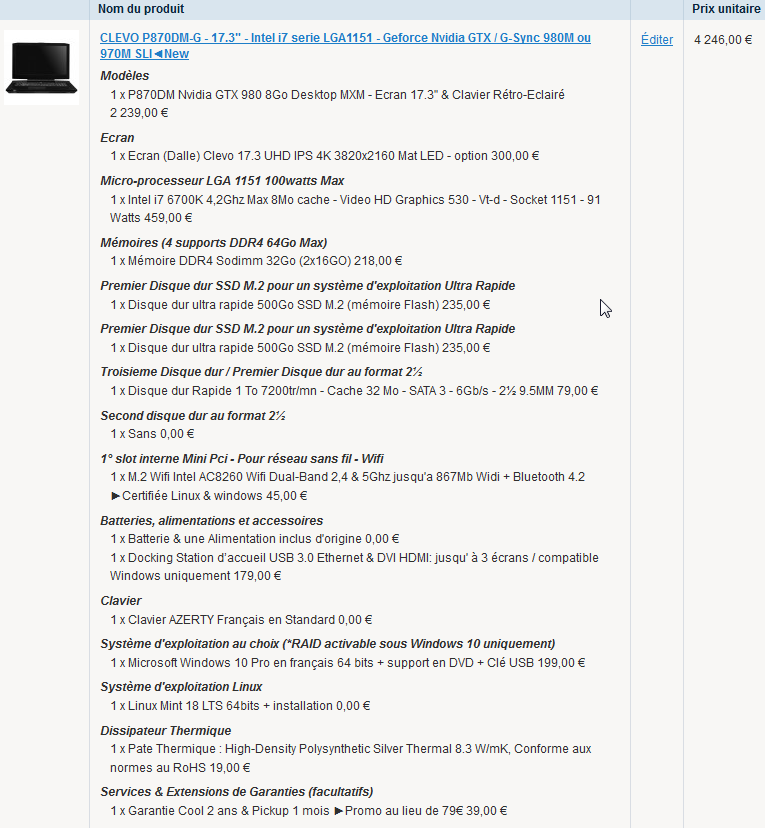 A titre d'exemple, voici les deux configurations (je ne mets que l'essentiel) que j'utilise actuellement, avec les prix d'achat :