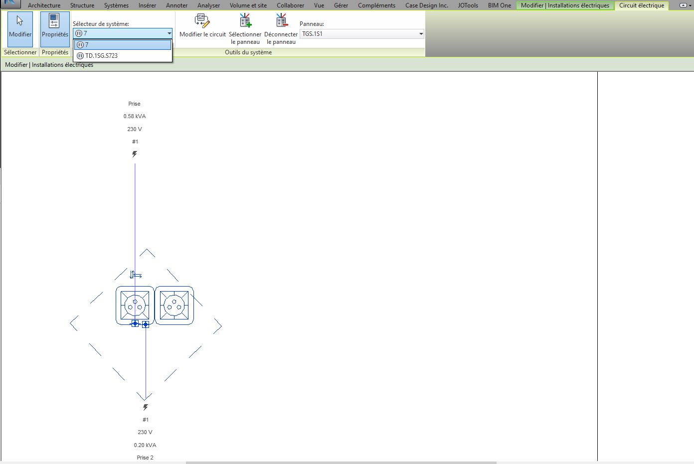 J'ai crée une famille avec deux prises ondulées et une prise normal et j'ai réussi à placer deux connecteur électriques un pour les prises ondulée , le second la prise normal. Mon problème est que je ne peut pas raccordées chaque type de prise sur le panneau électriques correspondant