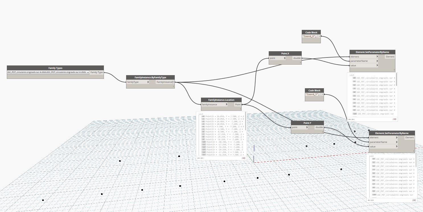 Jusqu'ici, j'ai pu créer un noeud (ci-joint) pour intégrer ces paramètres aux poteaux afin de les récupérer dans ma nomenclature.