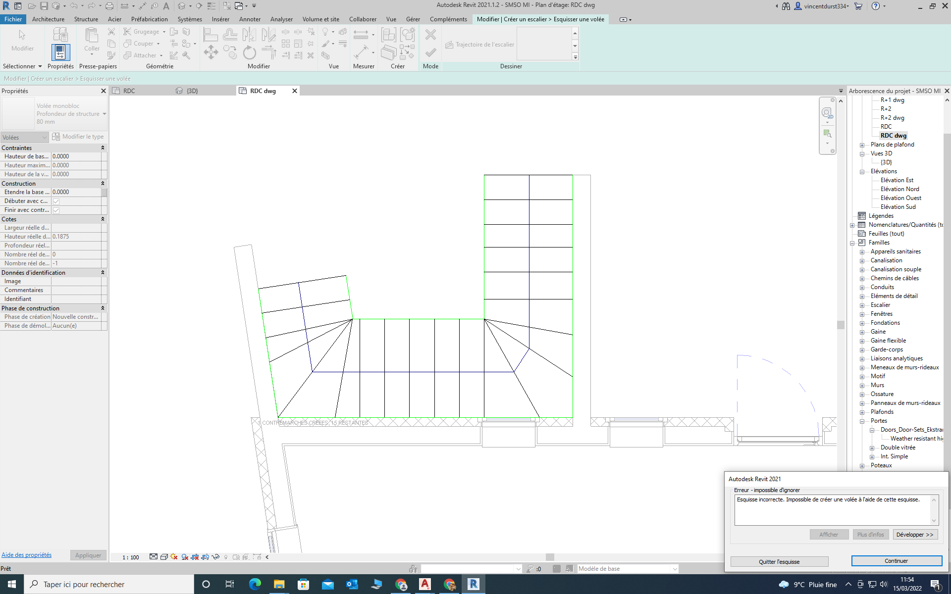 J'ai un soucis sur revit je n'arrive pas à créer un escalier j'ai ce message qui apparait. Je me suis trompé quelque part mais je ne vois pas ou....