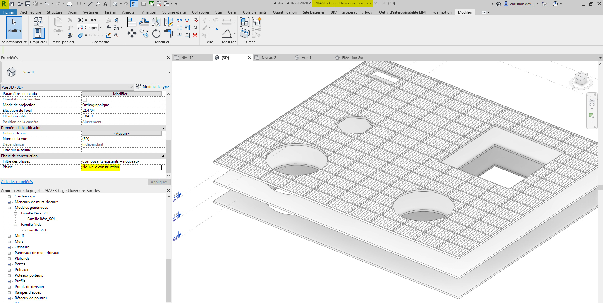 Je recherche la bonne méthodologie pour créer une cage dans un plancher en phase existant et démolir en phase projet sans qu'elle n'apparaissent dans toutes les phases.