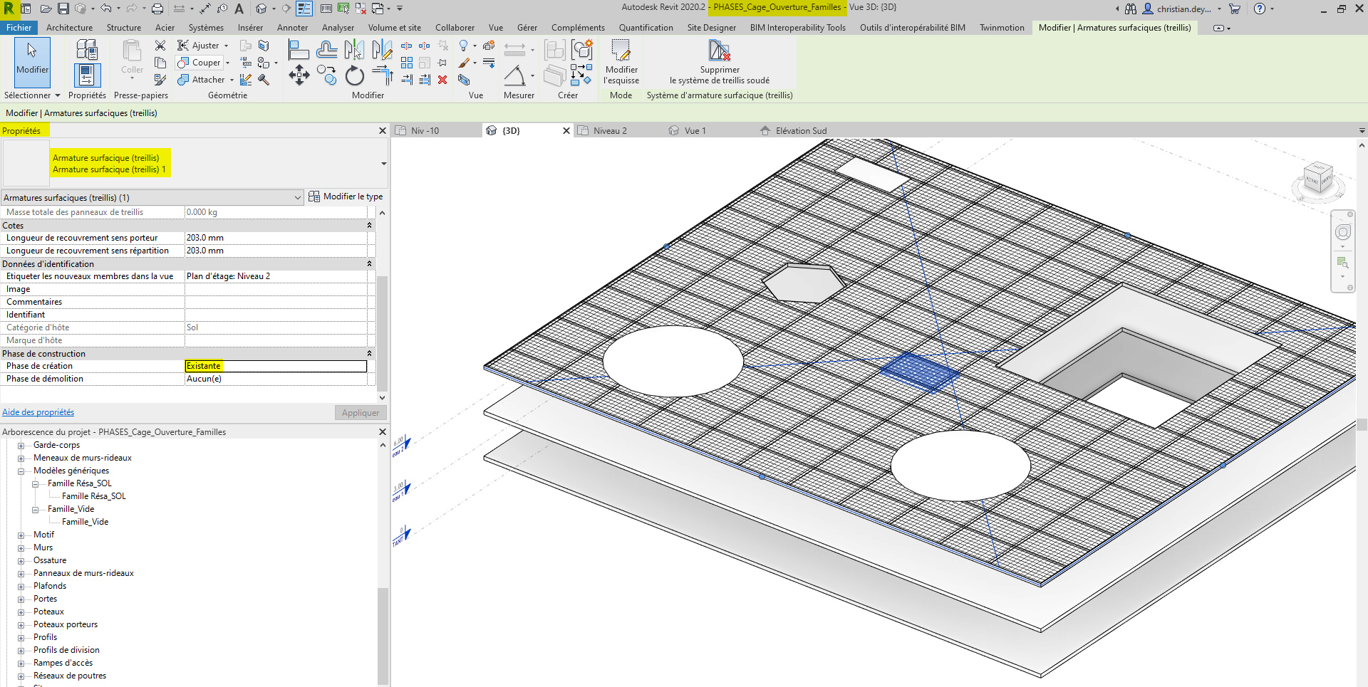 > 02_Phase Nouvelle > Cage > (Carré) > la cage a été placée en phase nouvelle, mais elle interfère en phase existante, même topo avec une Ouverture (Hexagone)
