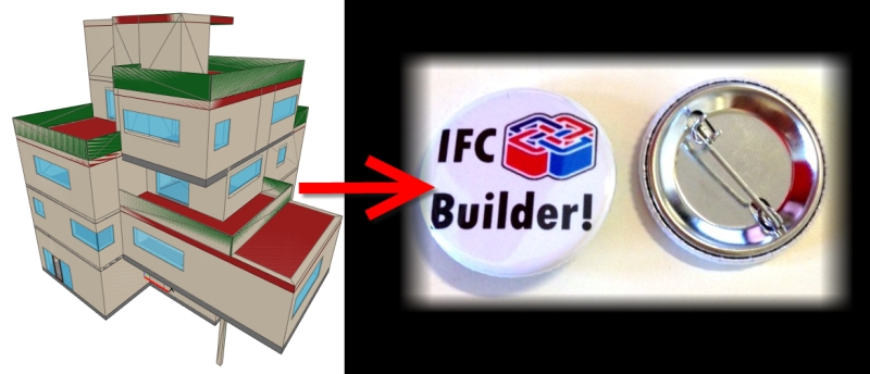 Non, ce n'est pas une blague! Et le fait que IFC Builder soit gratuit non plus... L'idée du badge, un peu vintage certes, nous a amusé à l'idée des gens l'arborant fièrement: à l'époque du déploiement de l'open BIM, qui ne veut pas être un "IFC Builder!" ?