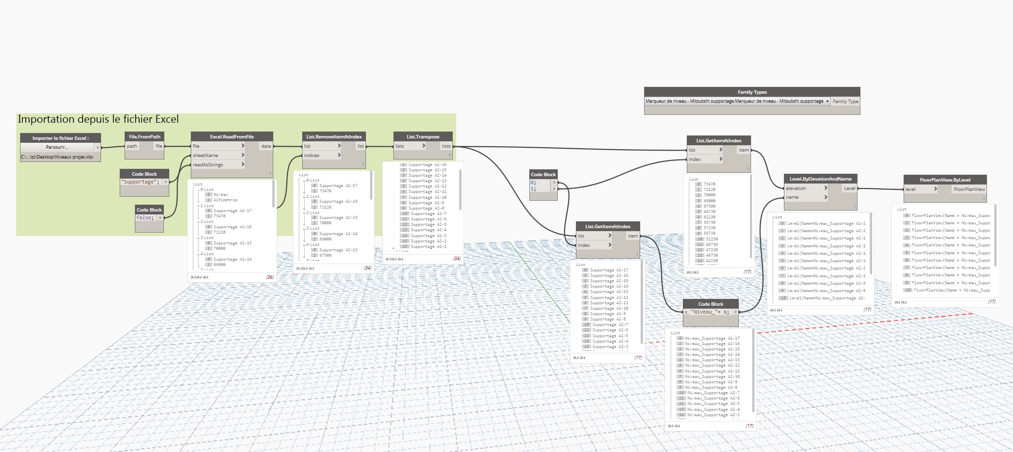 je suis novice sur Dynamo et j'essais d'automatiser au maximum la création des niveau pour mes projets via feuille Excel.