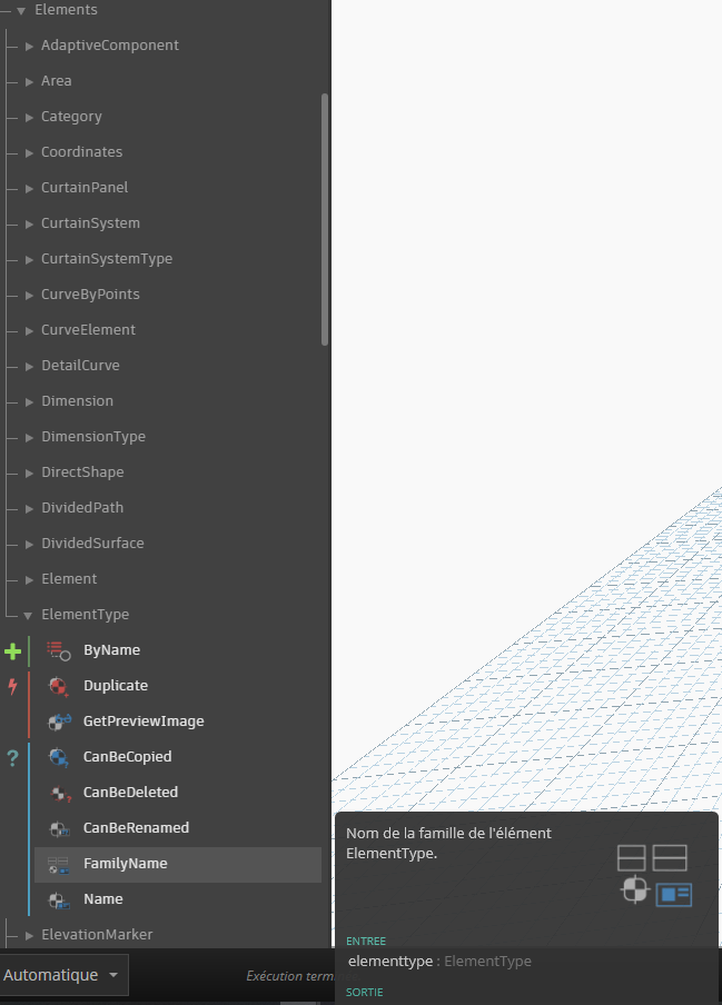 J'ai tenté quand même ton bout de script mais je n'ai pas le noeud "ElementType.FamilyName" donc c'est pour ça que je n'y arrivais pas. J'ai essayé de ne mettre juste "Family name" ou du même genre mais ça me donnais les dimension et pas "semelle filante" comme toi.