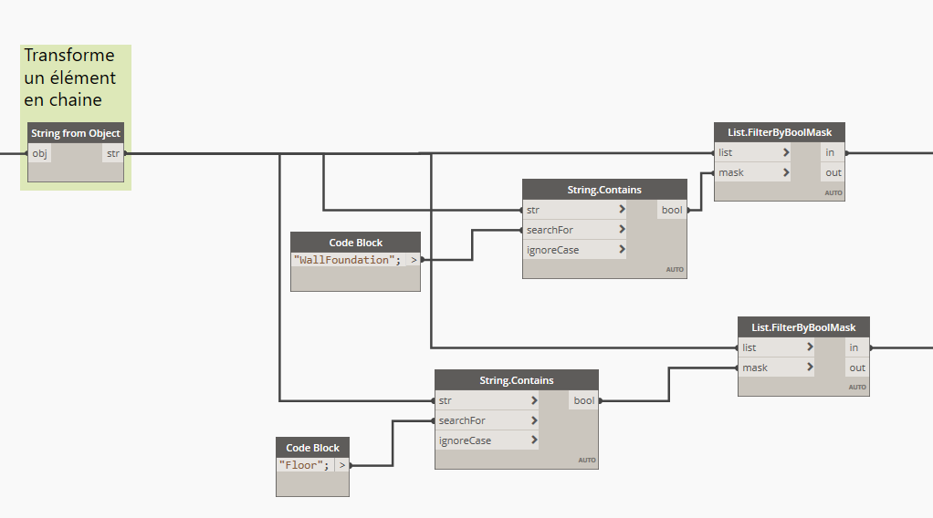 Sur la 3e PJ, j'ai changé les éléments en chaîne pour extraire "WallFoundation" mais pour utiliser "get.location", je doit retransformer en élément mais je ne trouve pas le noeud qui fait l'inverse de "String from objet".
