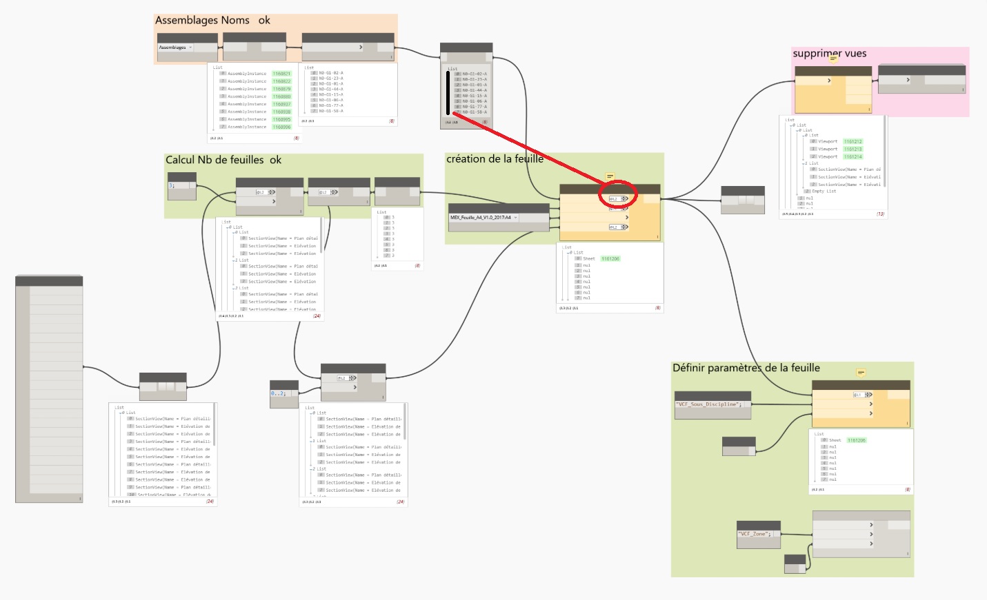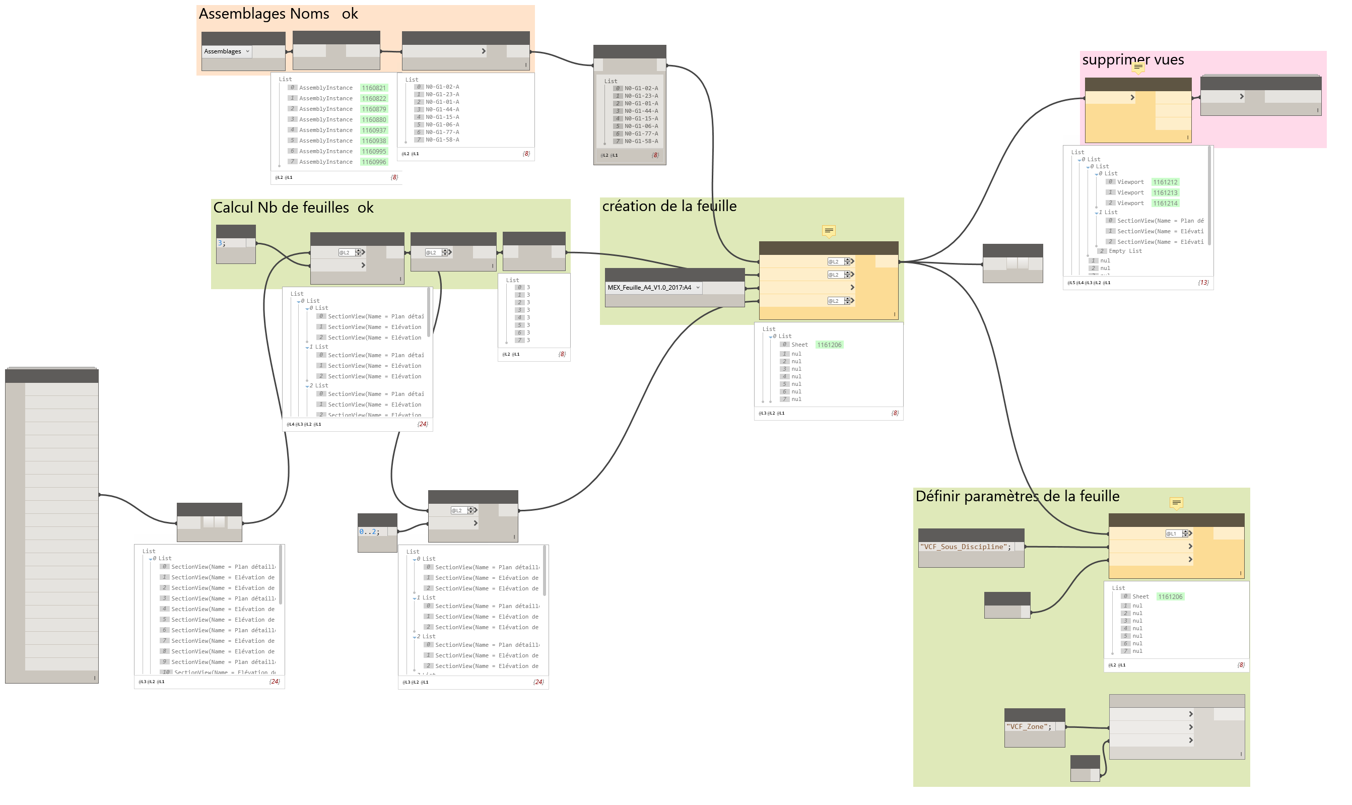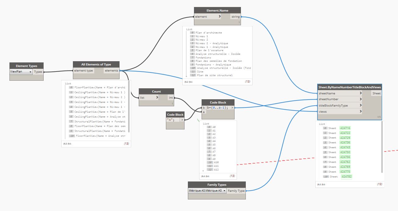 ta capture d'écran est pas trop lisible, mais je crois que t'as utilisé le noeud "Sheet.byNameNumberTitleBlockAndView" et t'as utilisé le niveau 2 d'une liste dont t'as pas besoin.