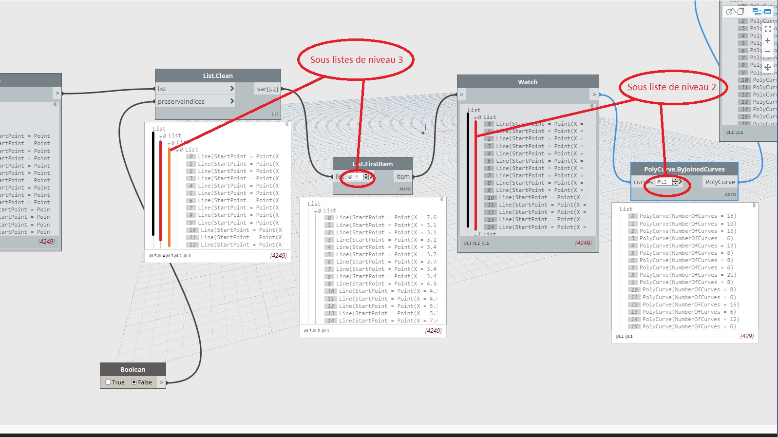 L'utilisation de niveau dans les noeuds dépend de la nature des listes d'entrée (input) ,ce paramétrage des niveaux nous évite d'utiliser "list.map" à chaque fois.