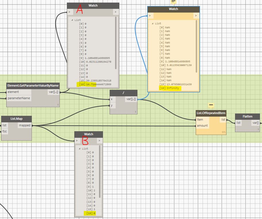 Dans la liste A j'ai une valeur [16] = 14.714 alors que dans la liste B [16]=0