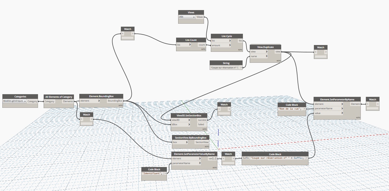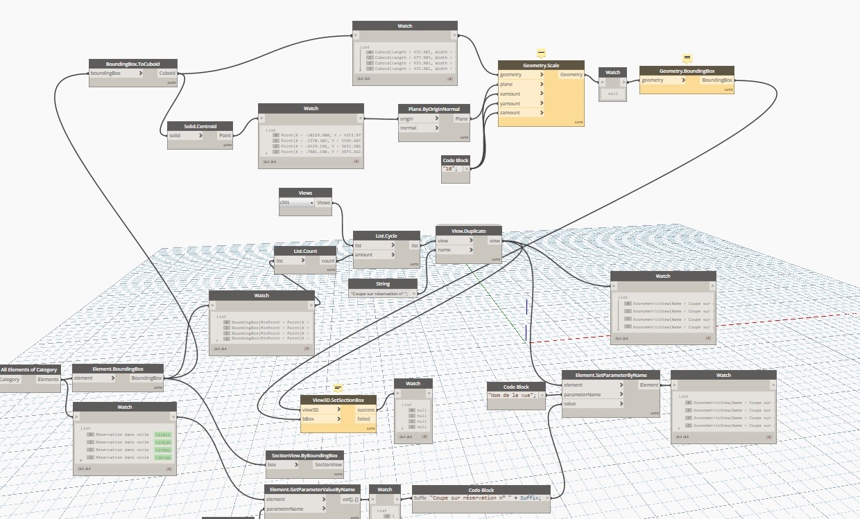 Je souhaite créer des zones de coupes de chaque réservations (Pour mon cas modèle générique) automatiquement avec dynamo qui viennent s’afficher dans l’arborescence directement.