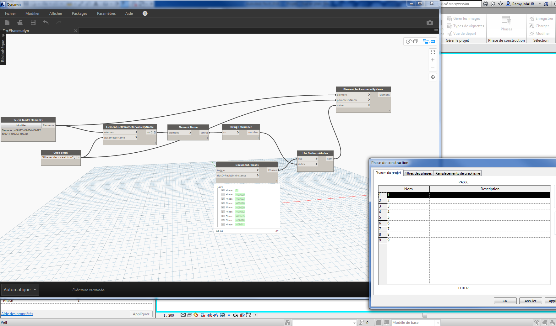 Pourquoi est-ce que mon script me supprime des phases dans les gestionnaire REVIT ? Comment faire pour que cela ne se produise plus ? Connaissez-vous un nœud plus adapté qui permet de récupérer la phase d'un élément à partir d'un "string" en entrée ? Avez-vous d'autres moyens de parvenir au résultat attendu ?