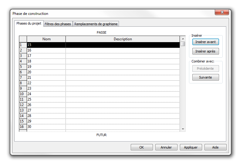 D'autre part, avant de lancer le script, j'ai créé 35 phases dans le gestionnaire de phases REVIT (1 à 35). Mais après avoir lancé le script, les phases 1 à 14 et 31 à 35 sont supprimées du gestionnaire de phases. (cf. pièce jointe "Gestionnaire de phases final")