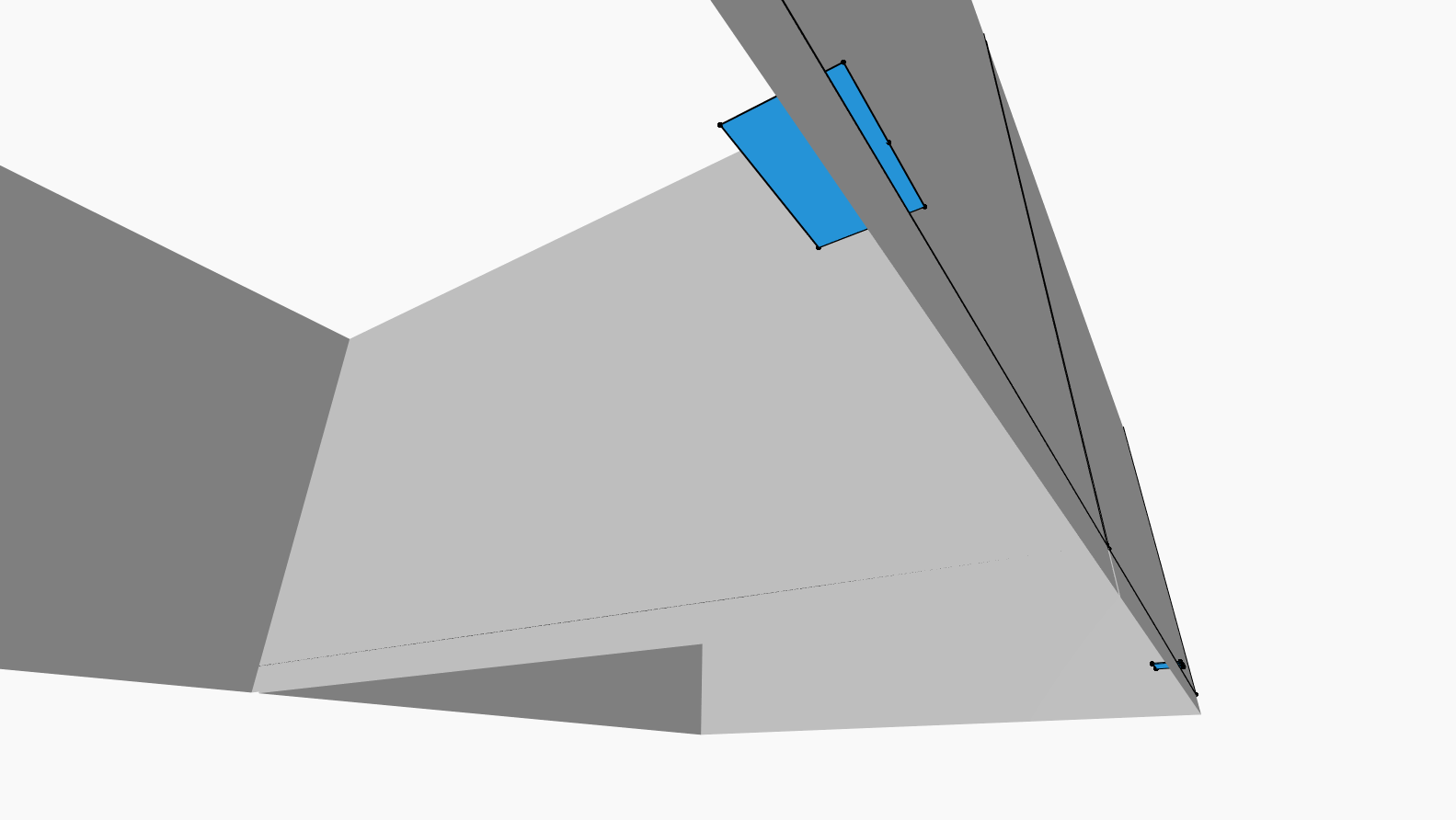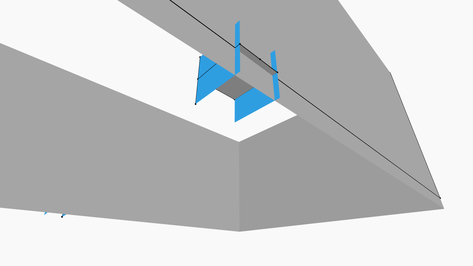 J'ai créé deux surfaces perpendiculaires qui se croisent : une verticale au droit des limites de pièces, une horizontale au droit des portes. J'ai pensé à récupérer l'intersection de ces deux surfaces (j'obtiendrais donc une droite) et de la soustraire au contour des pièce...mais je ne trouve pas de fonction sur Dynamo qui permette de récupérer ces intersections de surfaces...