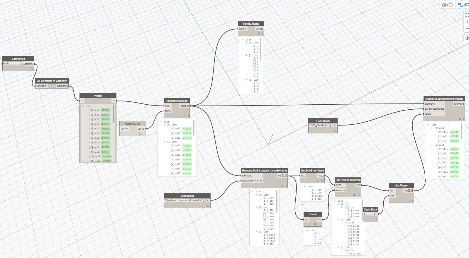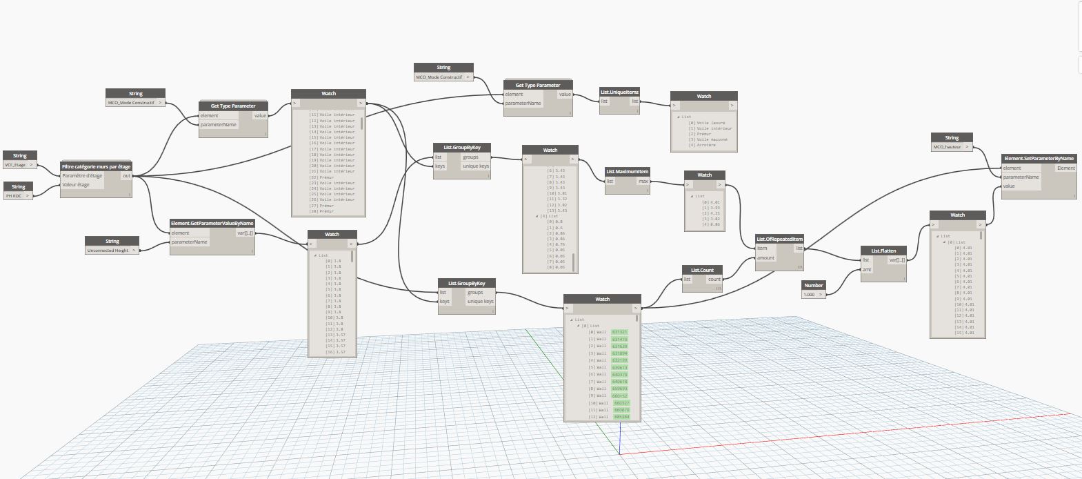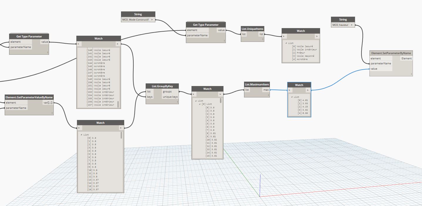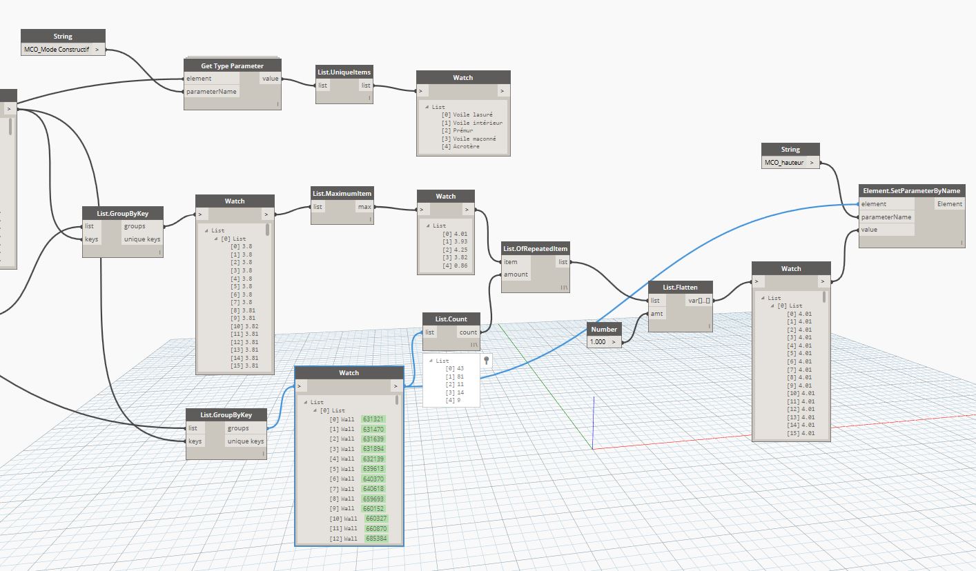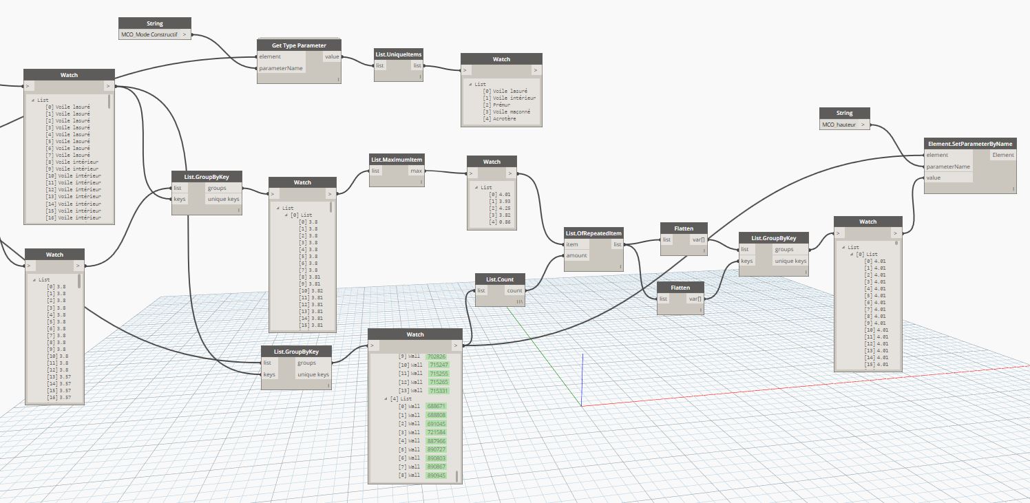 Mon seul problème: J'ai besoin que mon paramètre soit un paramètre de type, sinon cela remettrait en cause le principe de mon gabarit de travail. Pour cela je suis obligé d'utiliser un "List.GroupByKey" pour sortir mes hauteurs non contrainte regroupées par le paramètre de type "MCO_Mode constructif".