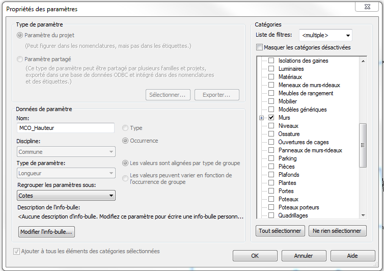 Mon problème: Je voudrais recopier dans un paramètre partagé les bonnes hauteurs maximales dans les bonnes occurrences. La 1ère hauteur max dans les 43 premières occurrences ("MCO_Mode constructif = Voile lasuré"), la seconde dans les 81 suivantes...etc.