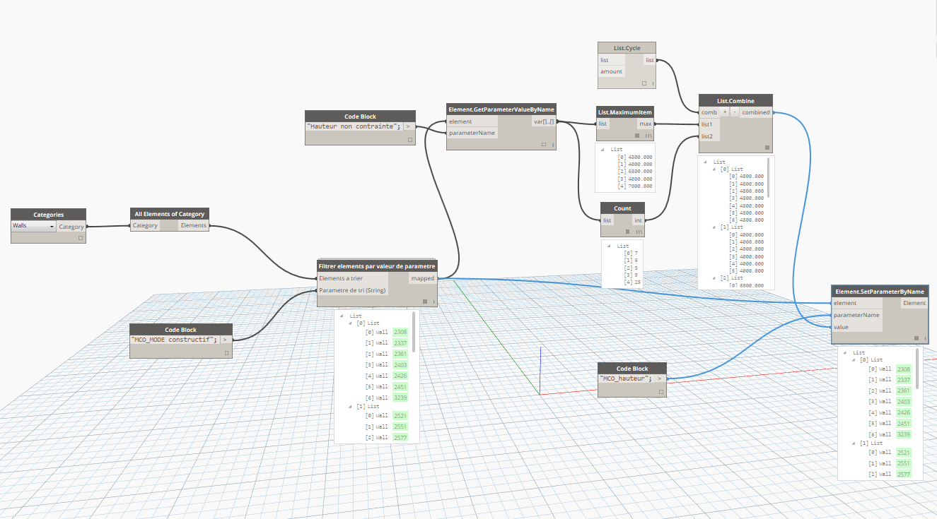 Effectivement, pouvoir filtrer des éléments à partir d'un paramètre est un nœud très utile. Je me suis créé des nœuds de ce type mais qui fonctionnent avec la version anglaise car je ne maitrise pas le Python ^^...Merci pour ton package BIMvf, je jetterais un œil.
