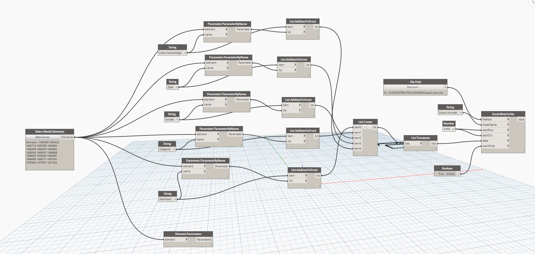 Bon tout d'abord on ne peut extraire le code d'assemblage de cette manière c'est un peu plus complexe, mais dans l'ensemble le dynamo est bien pour l'export de donnée. Il faudrait maintenant faire l'import de donnée à partir du même tableau excel généré par dynamo via cette définition. C'est pas bien compliqué !