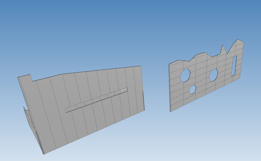 Par contre en exportant sous le format IFC nos panneaux murs rideaux n’affichent plus la pente mais affiche plutôt des panneaux horizontaux de différents hauteurs (un peu comme un escalier).