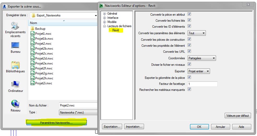 Enfin, essayez d’ouvrir le modèle Revit directement dans Navis (et vérifiez les mêmes options dans Navisworks directement).