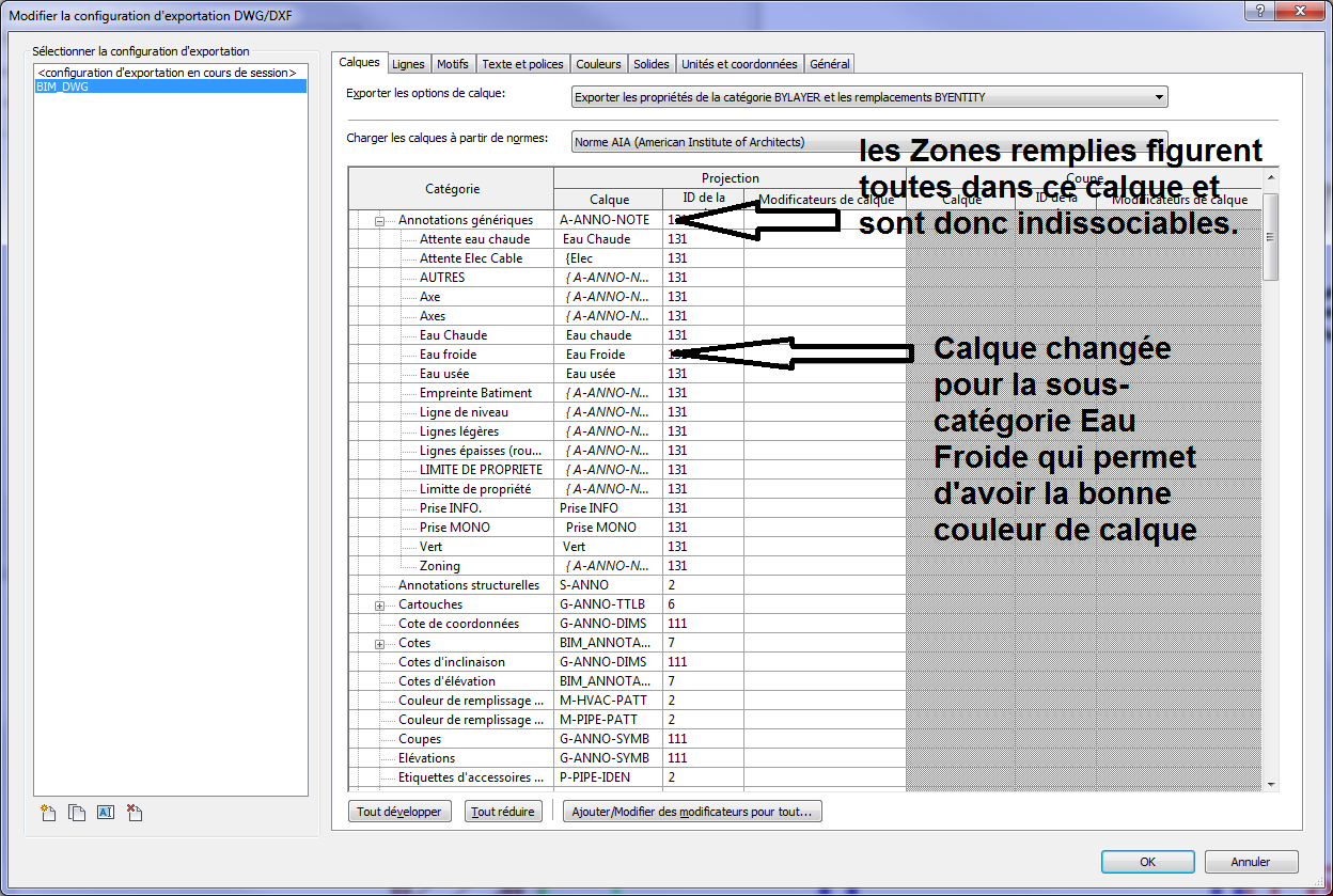 Export rvt vers dwg en conservant les couleurs d'annotations génériques nichées dans des familles