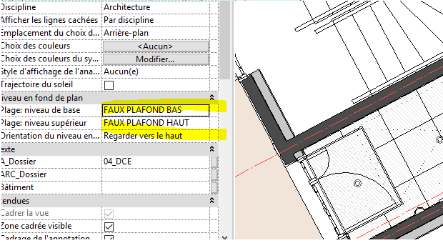 Mais comme on se trouve encore obligé d'extraire les dessins traditionnels de la MN, la solution de mettre les plafonds en fond de plans parait la plus BIM, n'est-ce pas? Cela permet de garder la bonne plage de vue et éviter de multiplier des zones de coupe.